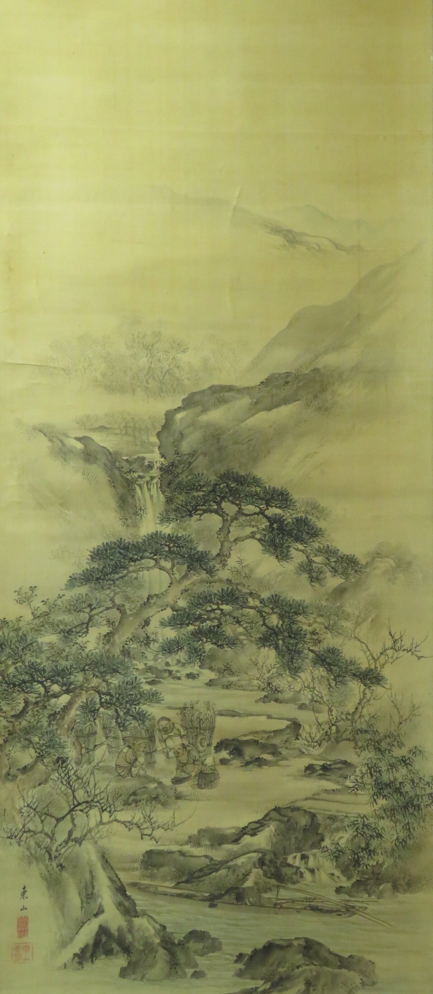 掛軸 石垣東山 敦賀 江戸・明治 漁樵問答来福図 尺五立 物故作家掛軸 JY1614