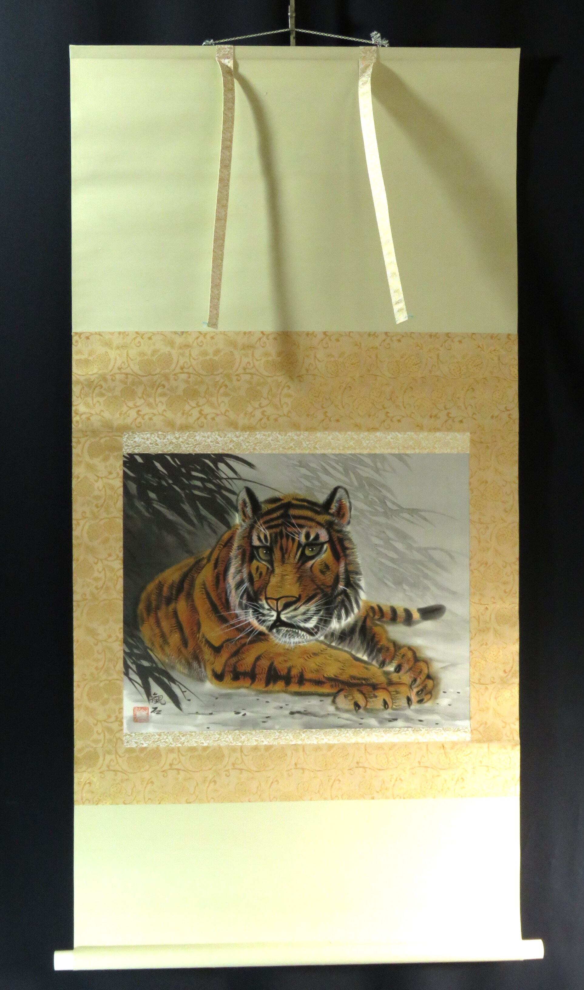 掛軸 観石 猛虎 共箱 尺八横 物故作家掛軸 JY230