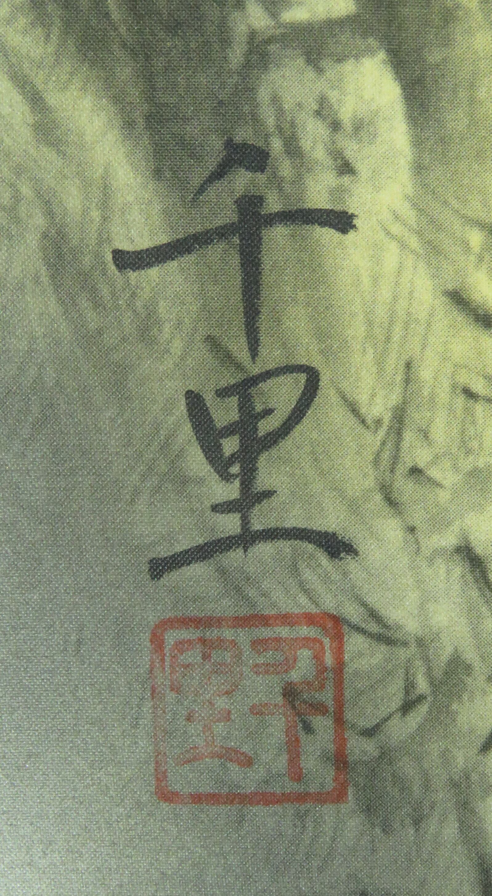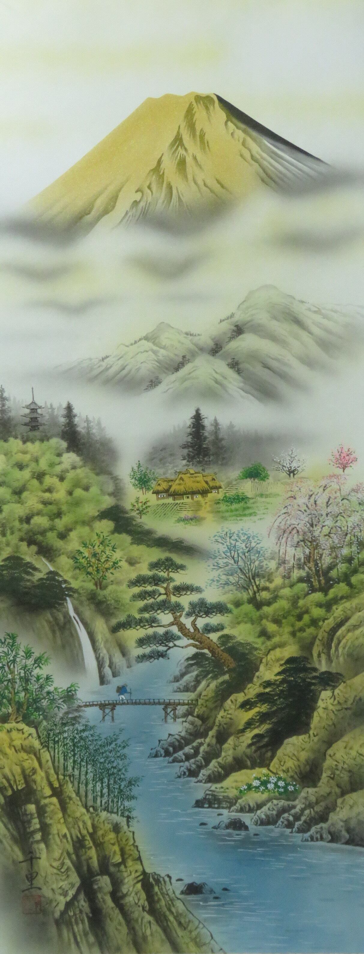 掛軸 千里 天地人彩色山水 共箱 尺五立 物故作家掛軸 JY456