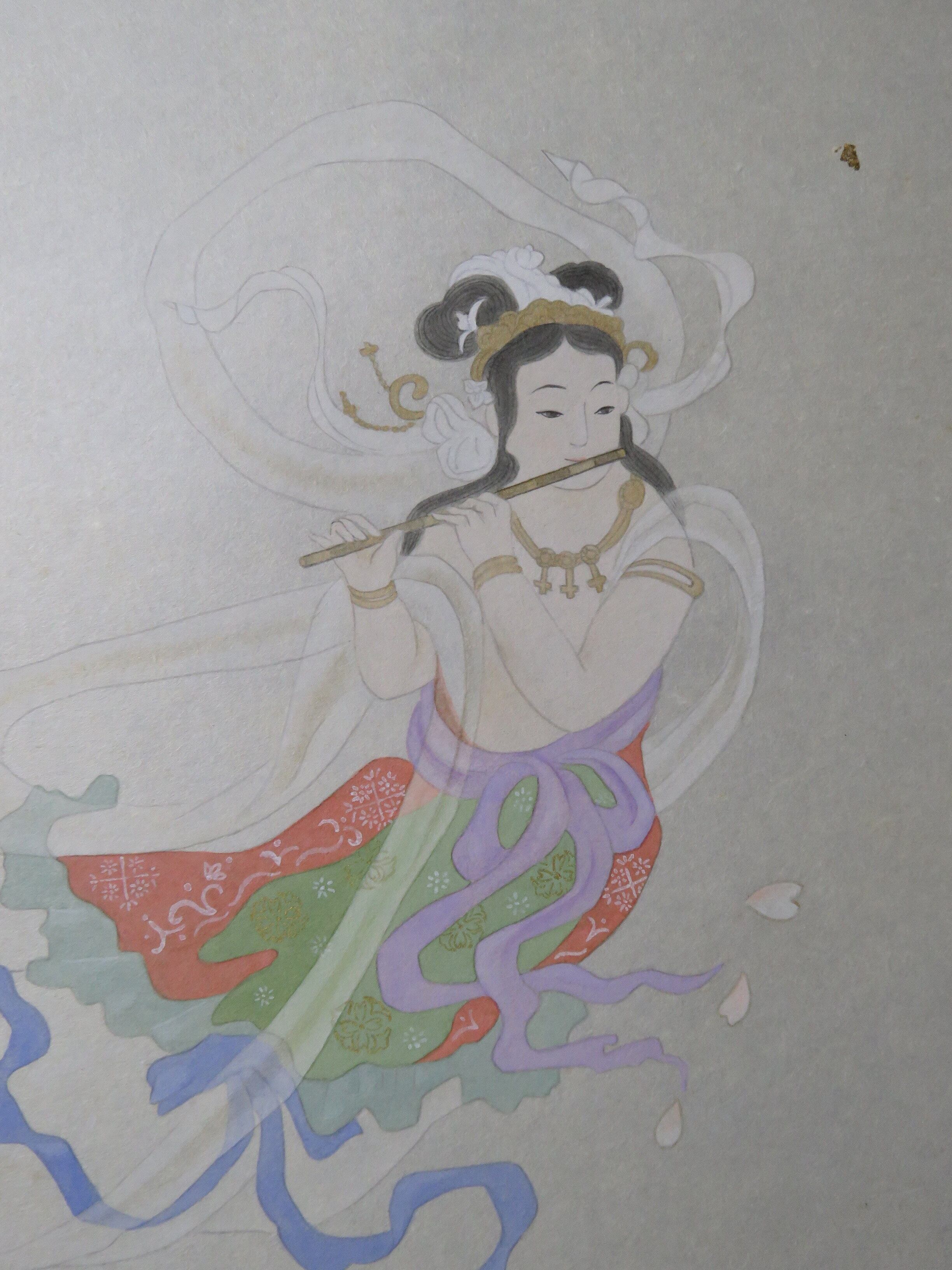 掛軸 竹中和 「天女」 共箱 尺八横 現代作家掛軸 JY1000