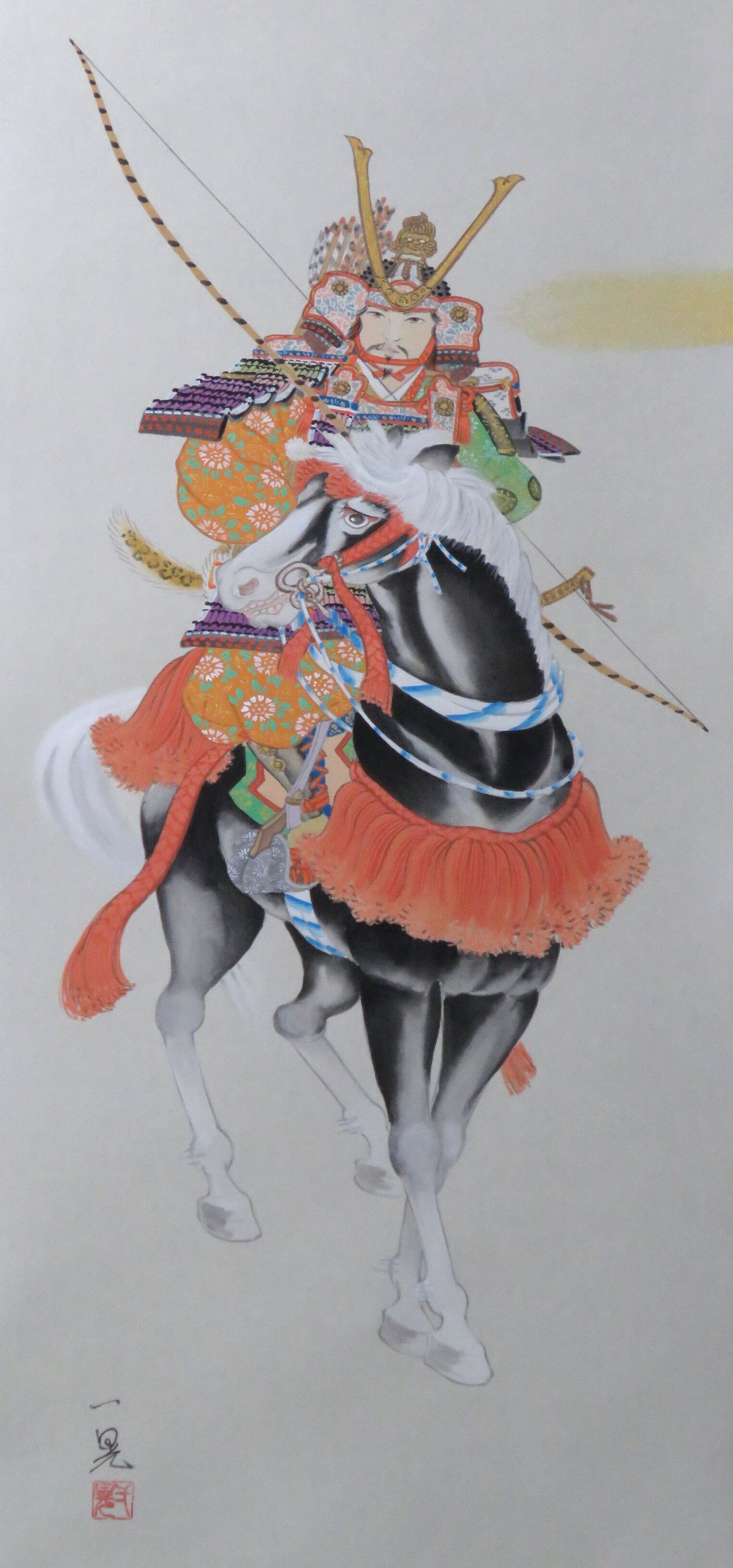 掛軸 寺田一晃「武者」共箱 現代作家新作掛軸 JY1068