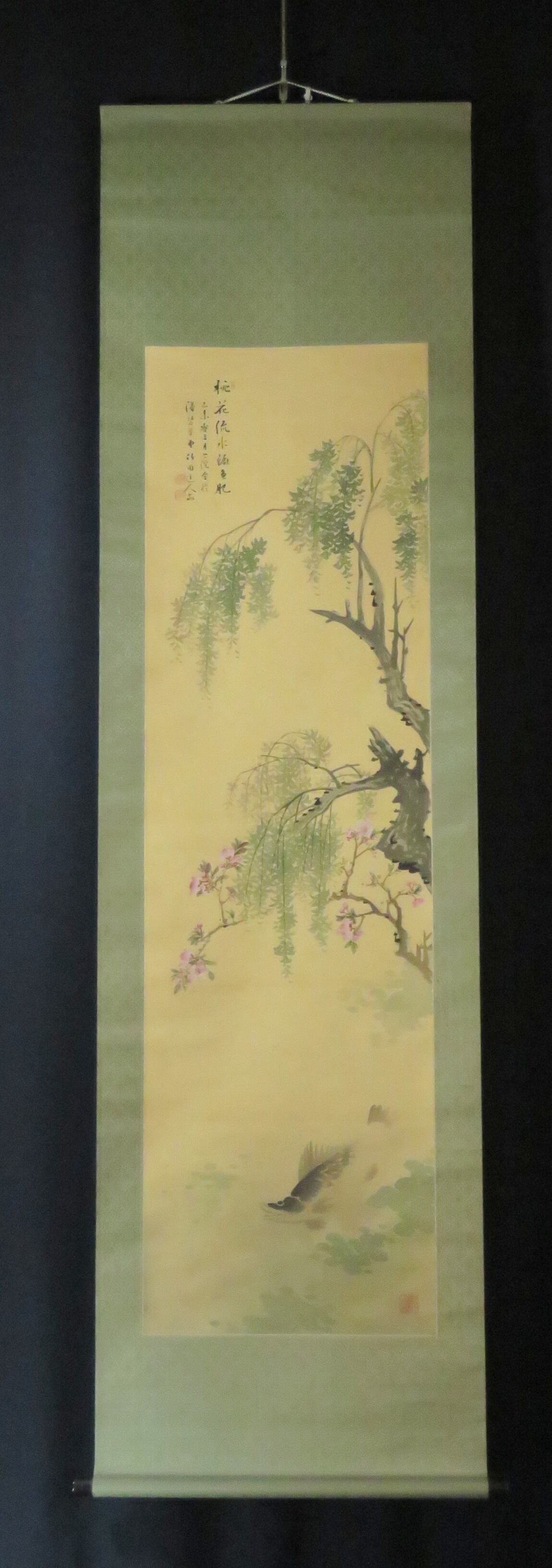 掛軸 水田竹圃 柳桃鱖魚(サケ) 尺五立 物故作家掛軸 JY1682