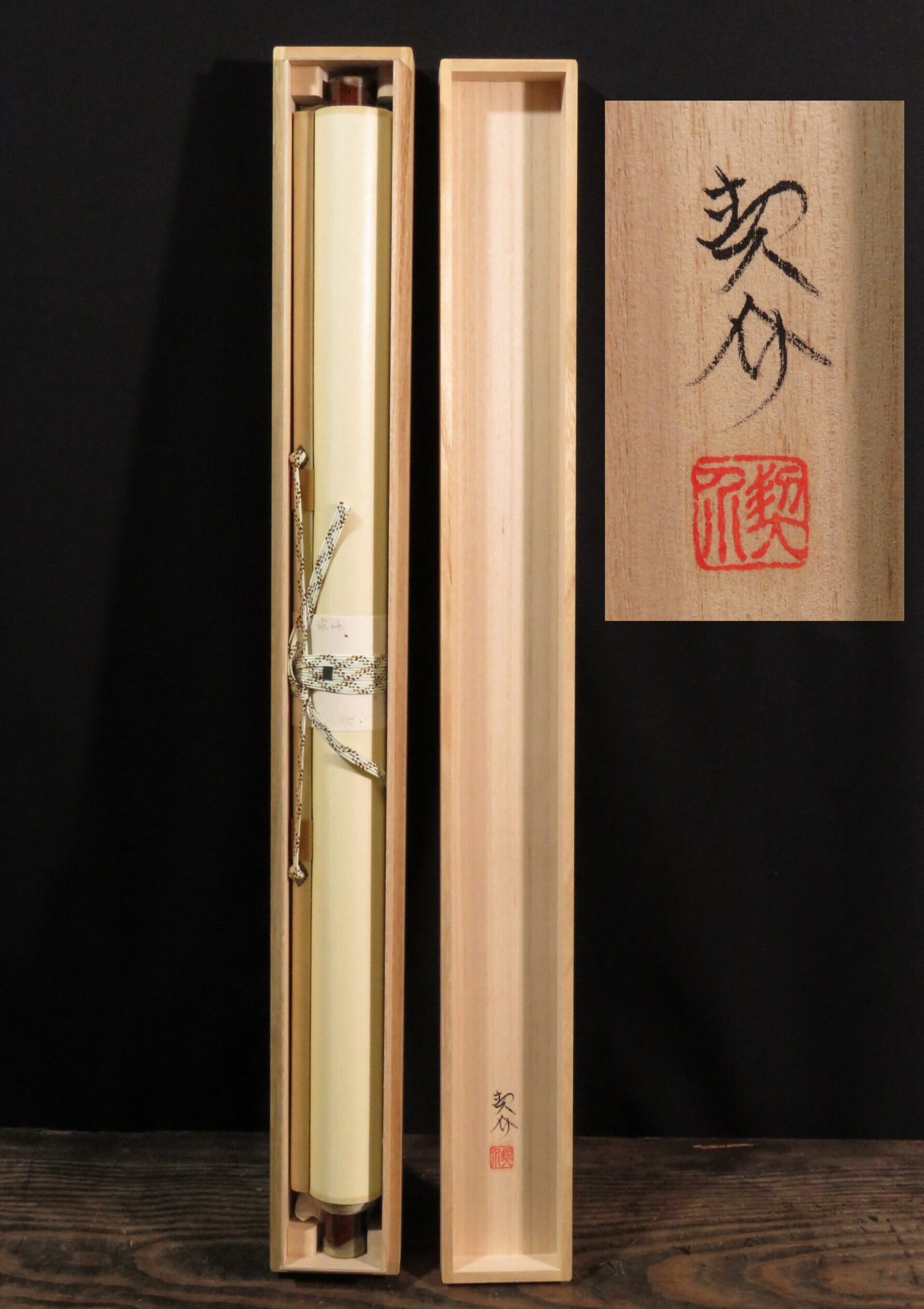 掛軸 中野契介 「茄子」 共箱 尺八横 現代作家新作掛軸 JY1086