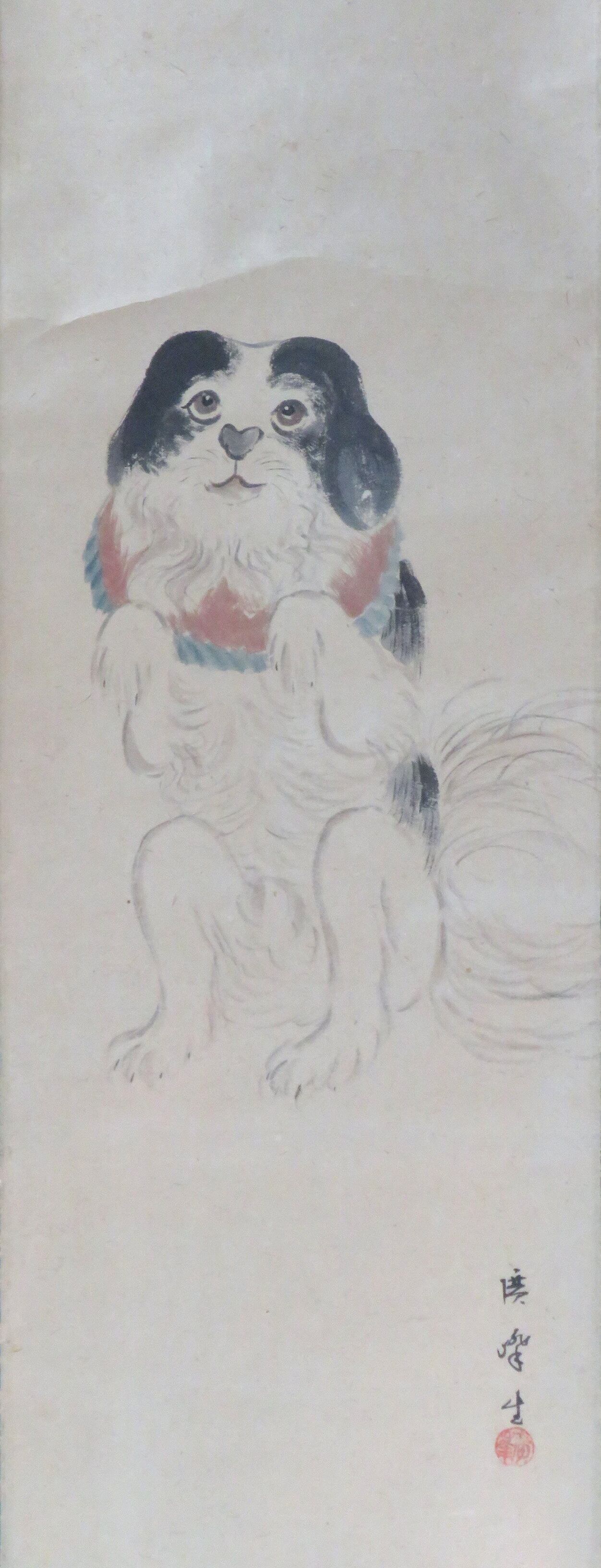 掛軸 廣峯 「狗図」 尺巾 物故作家掛軸 JY840