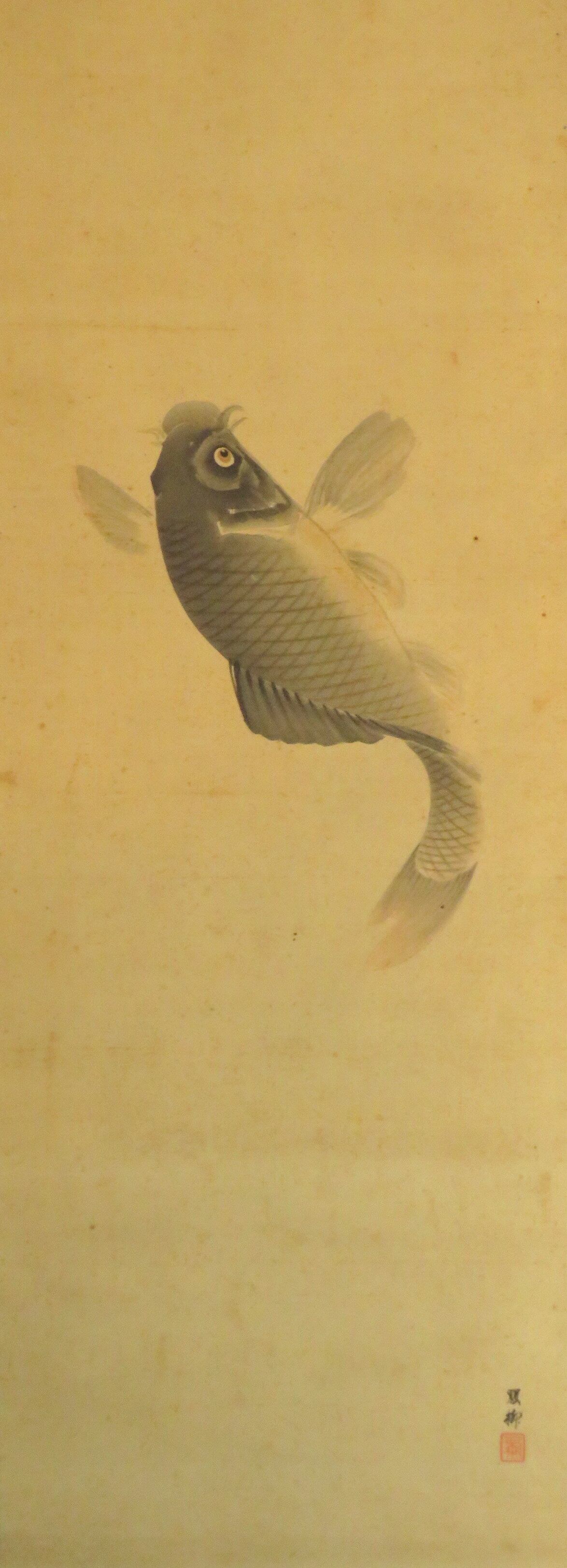 掛軸 吉村鳳柳 飛鯉図 尺五立 物故作家掛軸 JY9