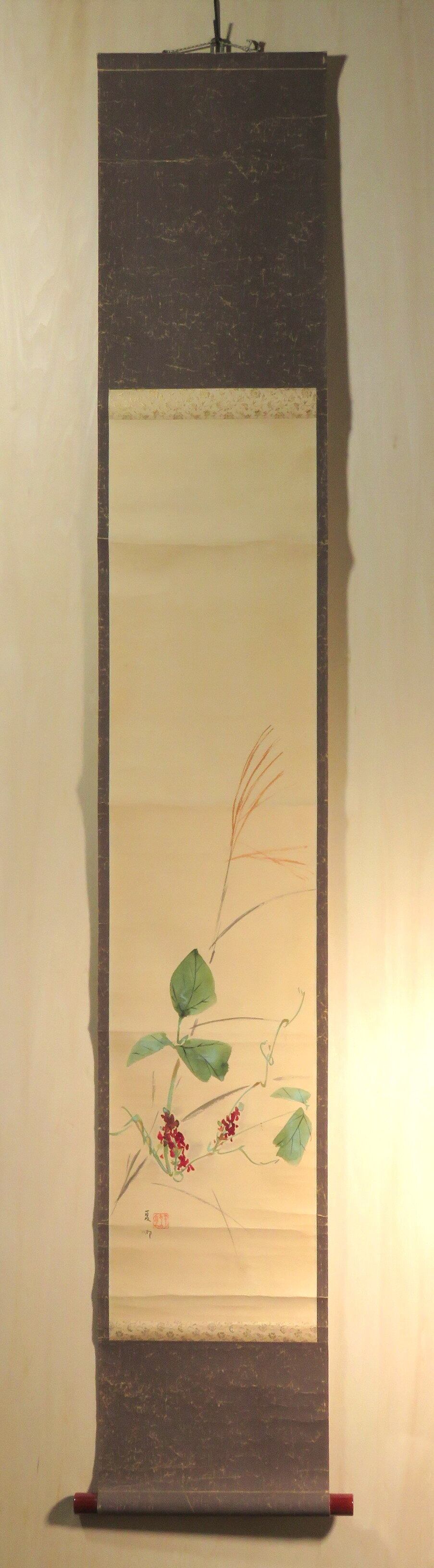 掛軸 須磨夏郷 「葛花」 尺巾 物故作家掛軸 JY829