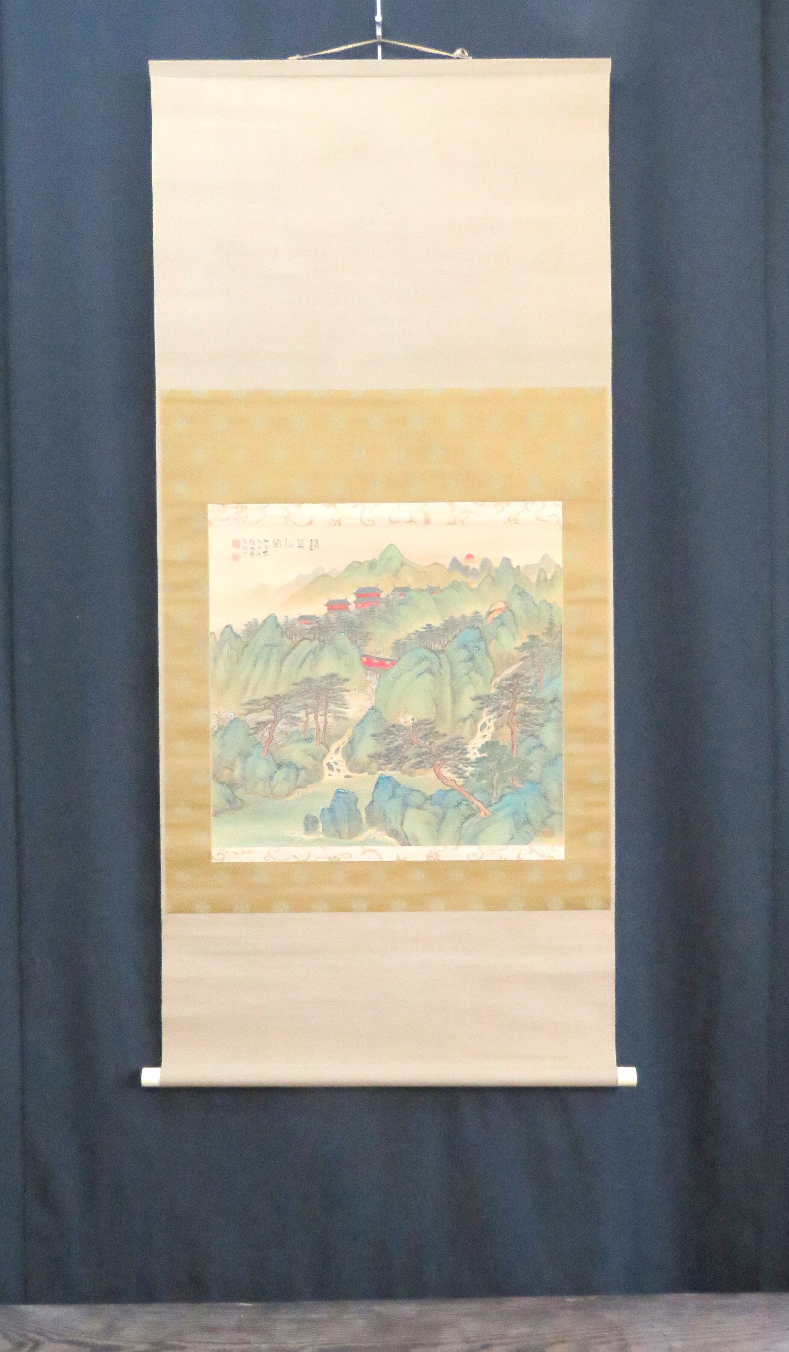掛軸 水田竹圃 「金壁蓬莱佛閣図」 尺五立 JY1084