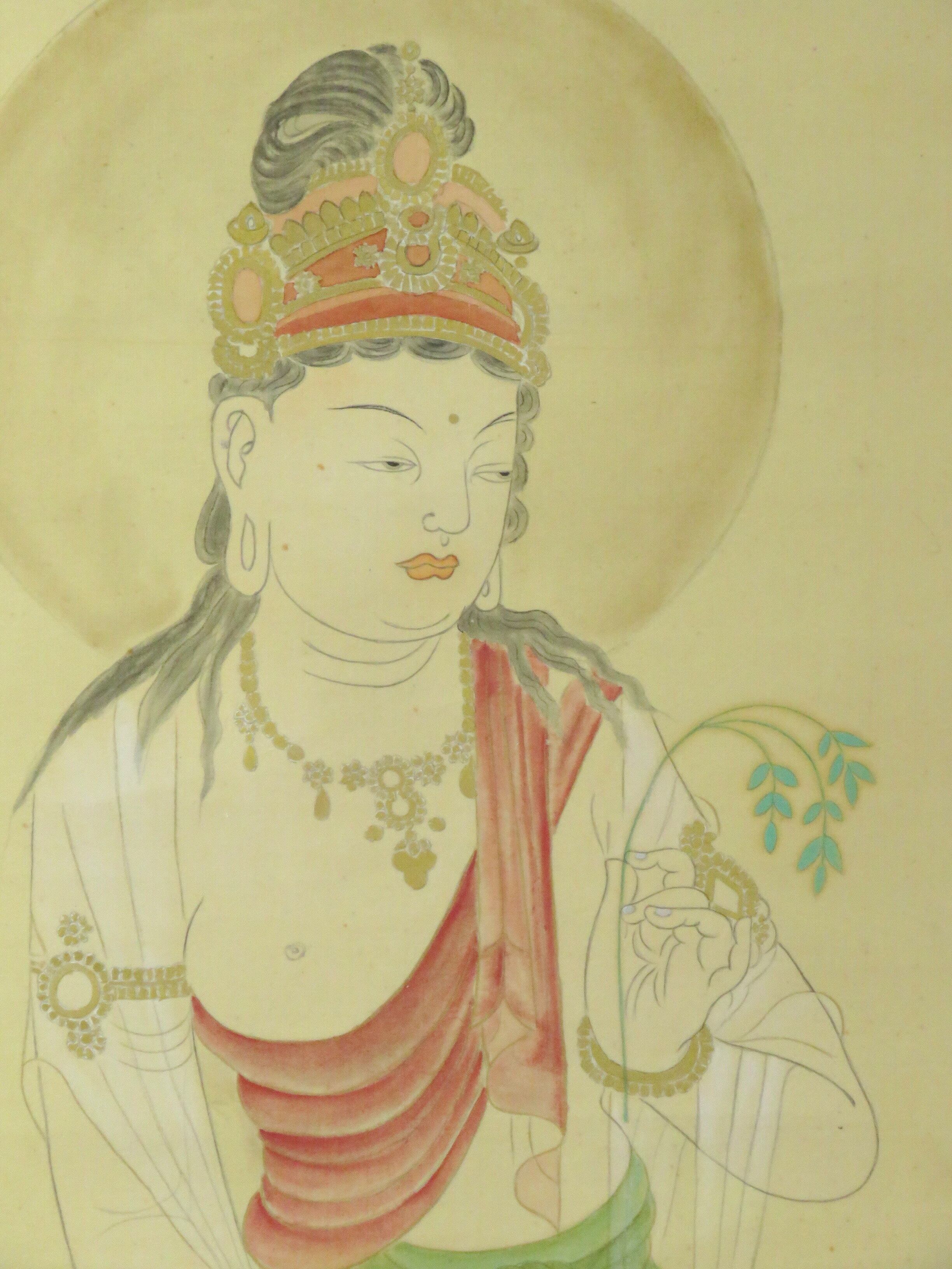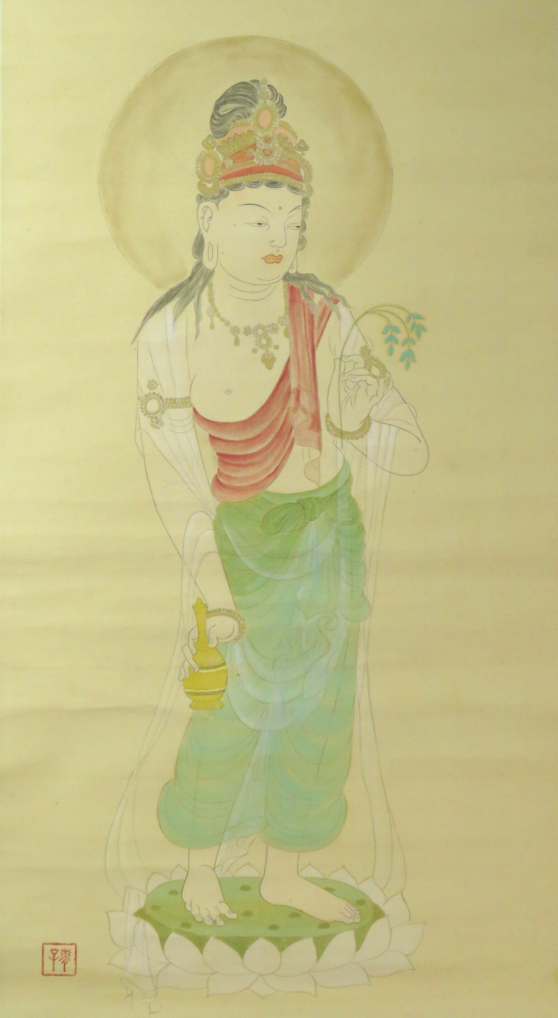 掛軸 麦子 観世音菩薩 尺五立 JY565