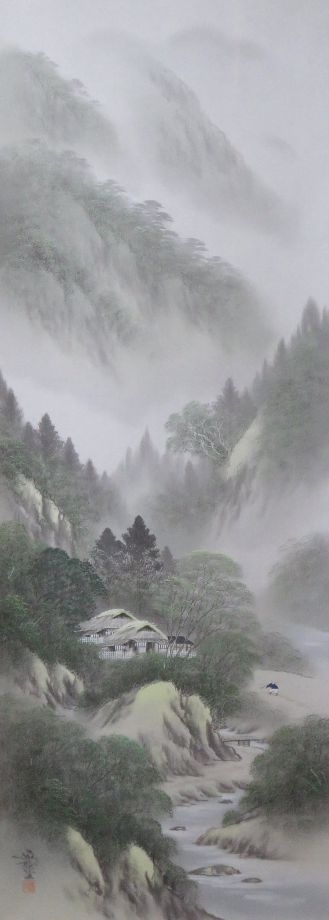 掛軸 吉村舞堂 淡彩山水 尺五立 現代作家掛軸 JY1693