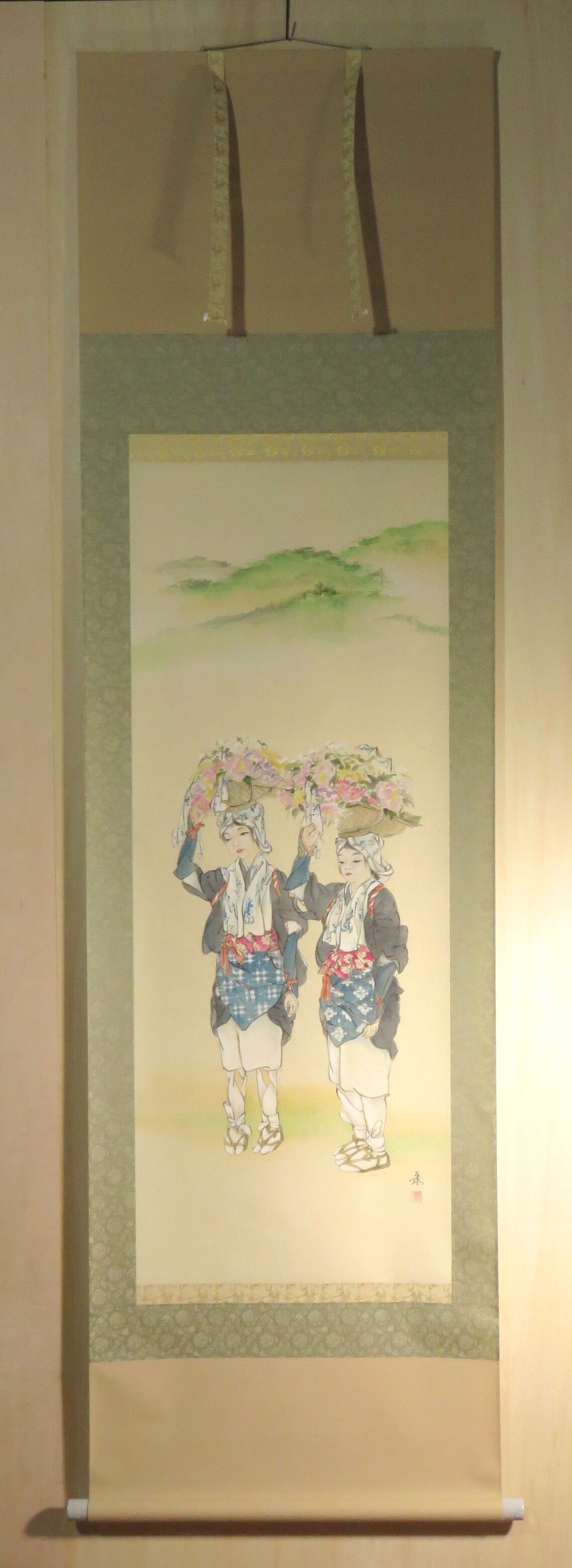 掛軸 小林康 「白川女」尺五立 現代作家新作掛軸 JY931