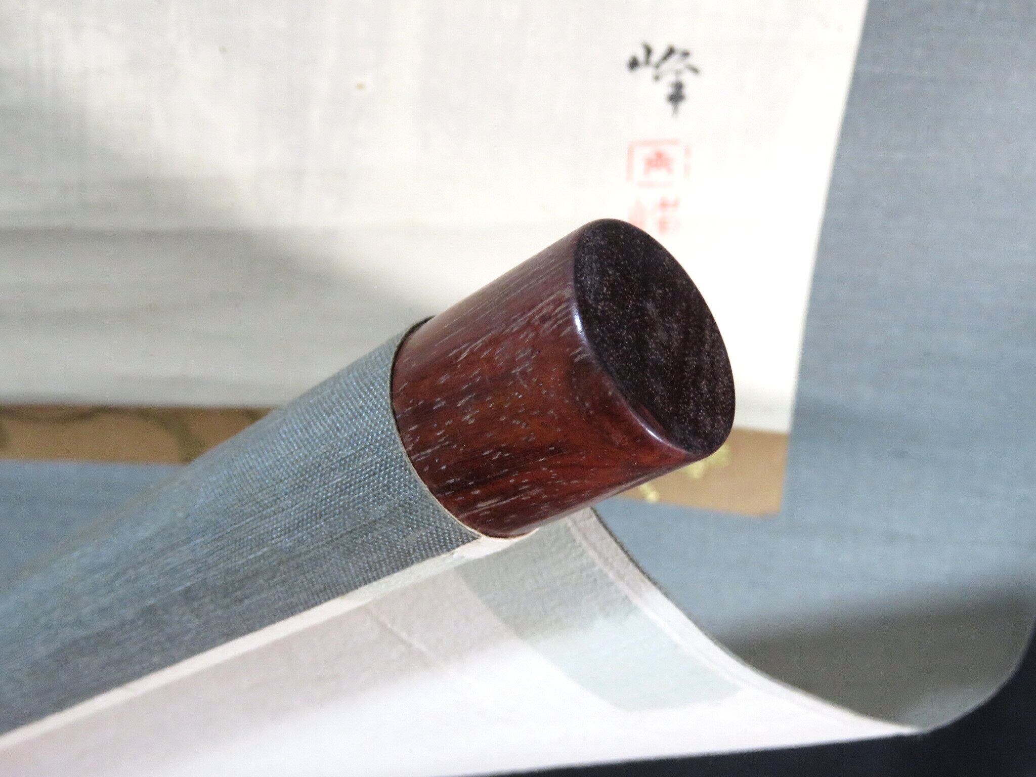 長谷川玉峰 雨中山水 尺巾 物故作家掛軸 JY158