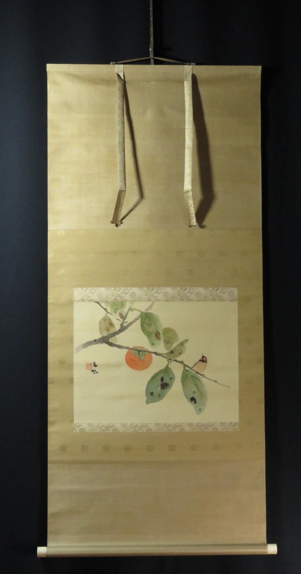 掛軸 須磨対水 晩秋楽趣(柿) 尺五横 物故作家掛軸 JY1722