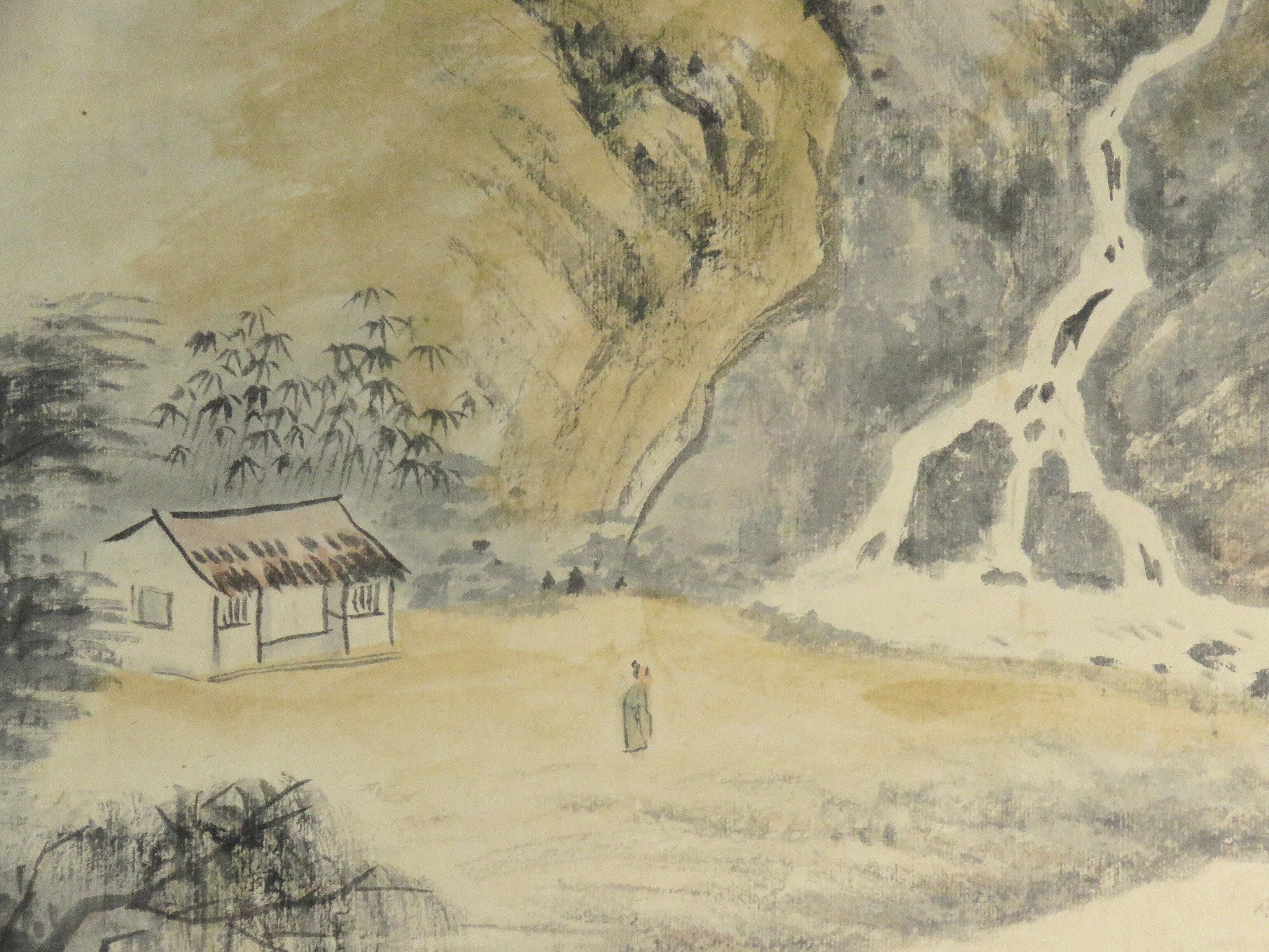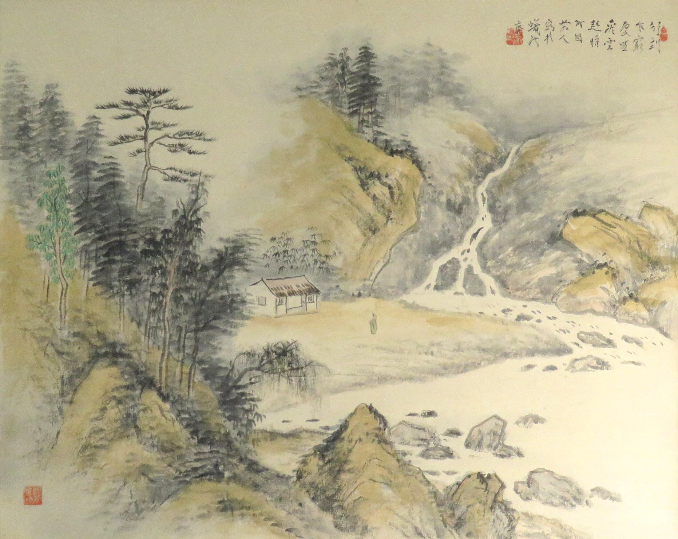 掛軸 水田竹圃「秋晩臨渓図」 尺五横 物故作家掛軸 JY879