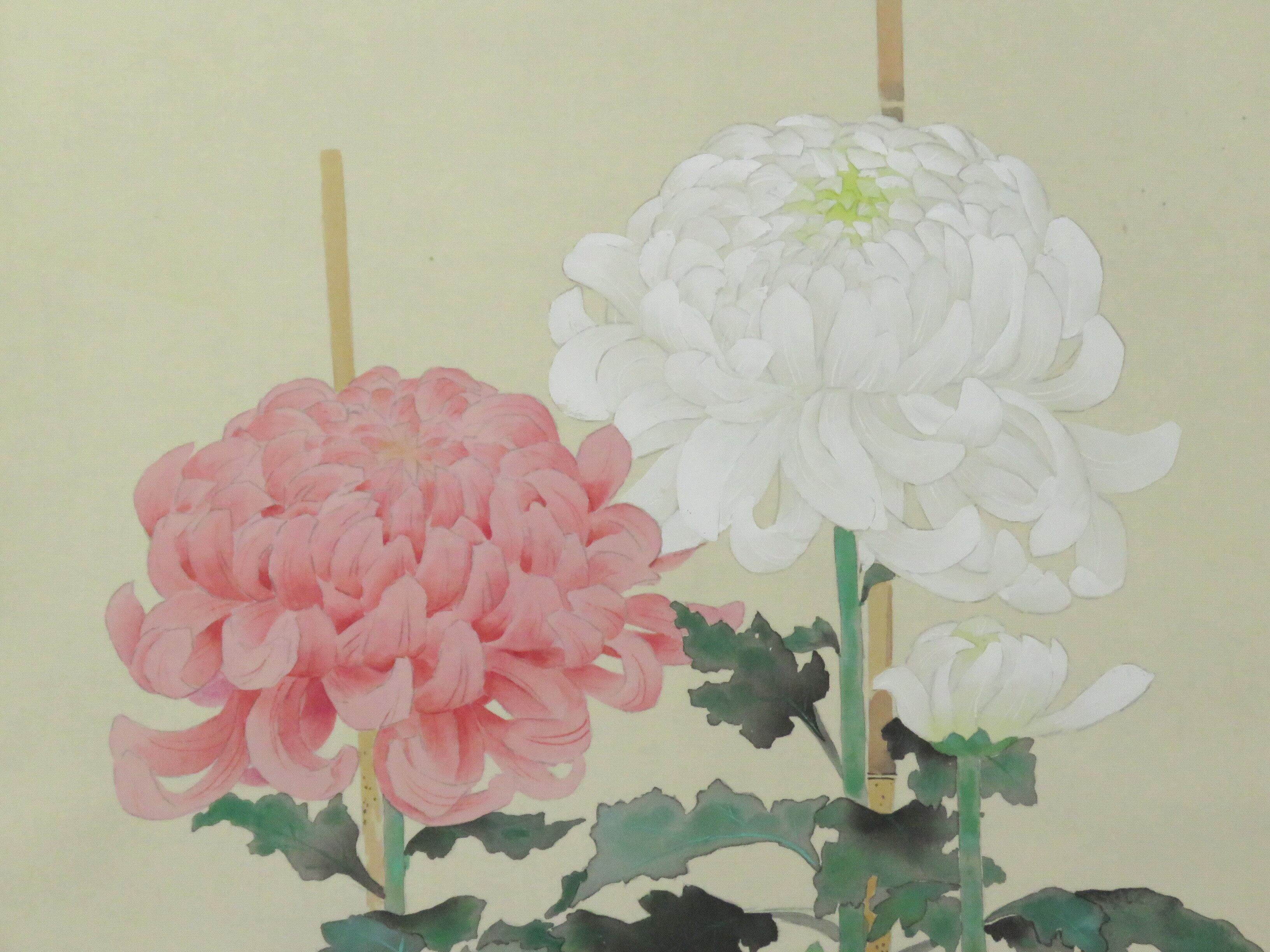 掛軸 内田逸郎 「菊」共箱 尺五立 現代作家掛軸 JY1060