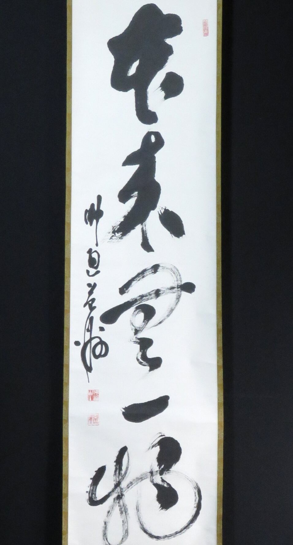 掛軸 山崎益州(佛通寺)書「本来無一物」 共箱 半切立 JY95