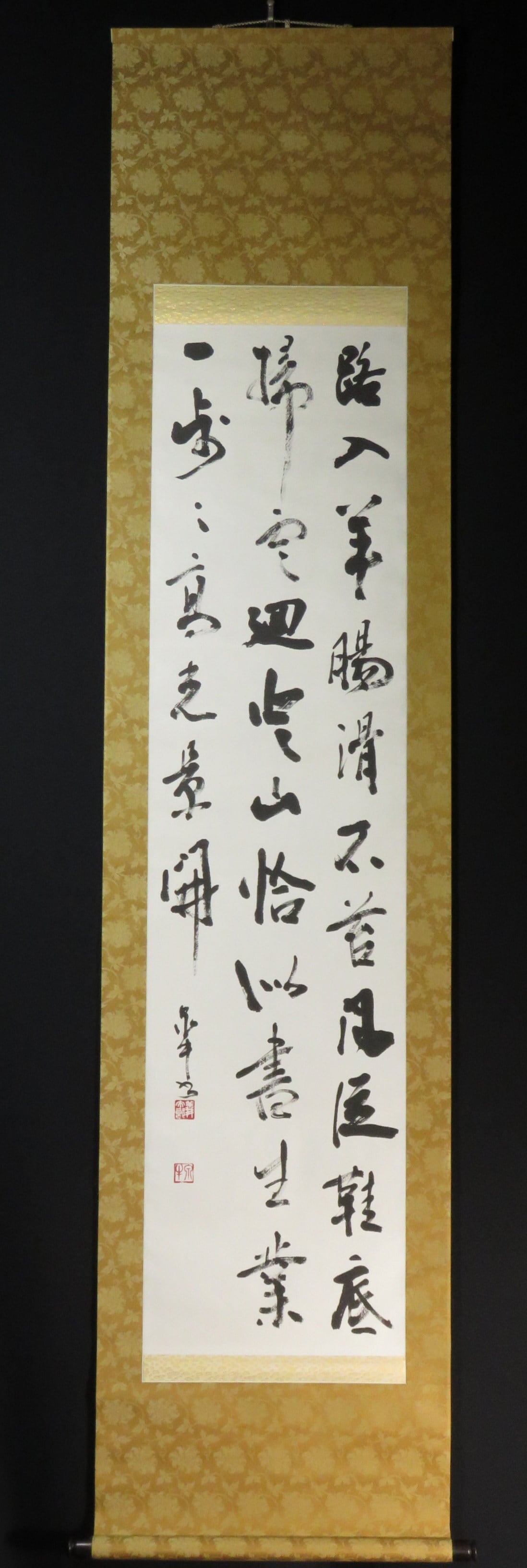 中谷泉牛 書 現川詩「山行示同志」 共箱 半切立 hanging scroll JY443