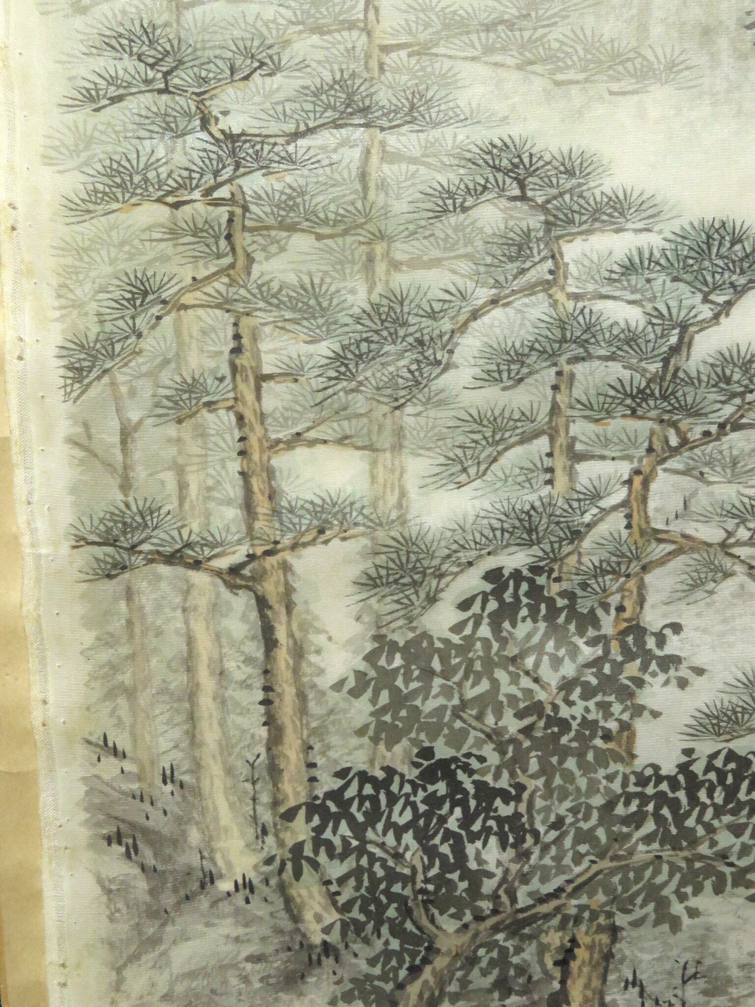 メクリ 竹嶺 彩色山水図 尺五立 JY252