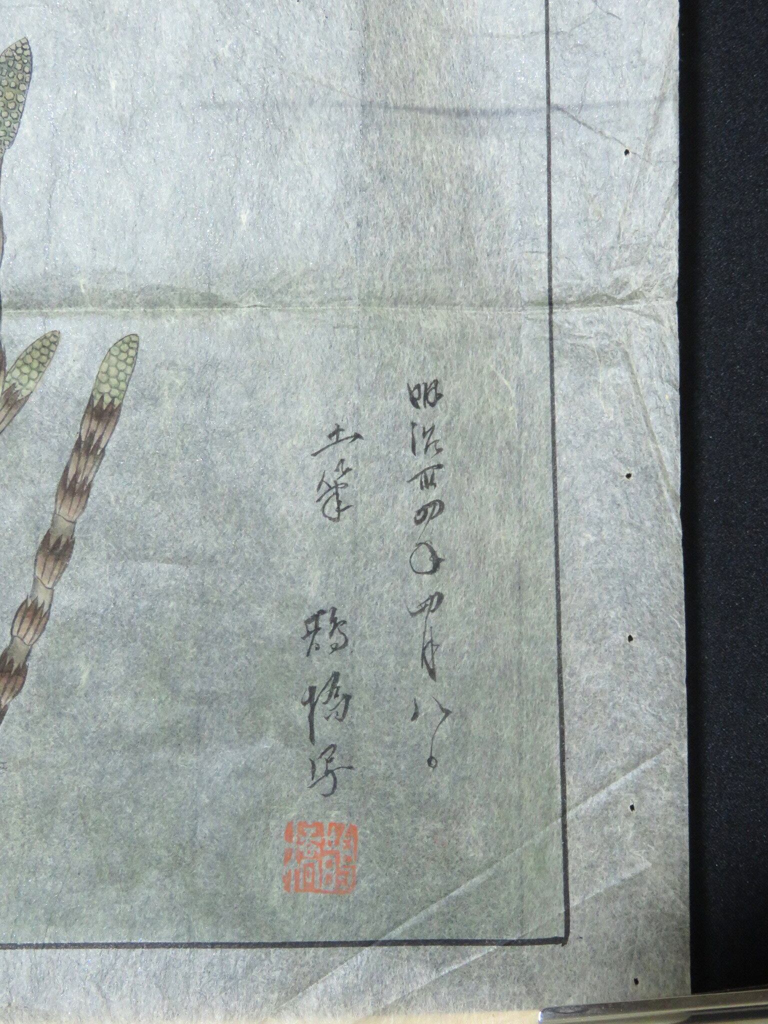 メクリ 明治草本画 銘:橋 土筆 無銘 朝顔