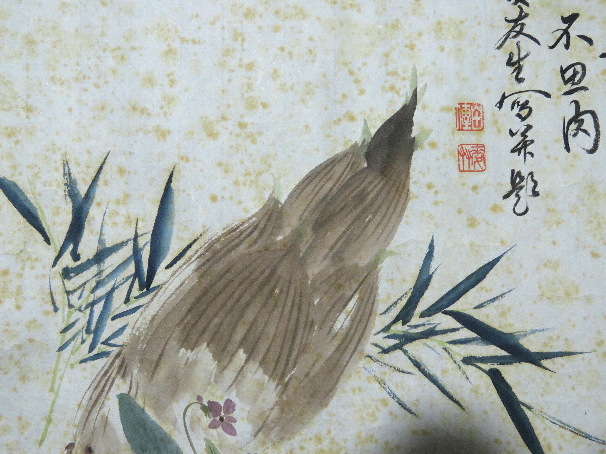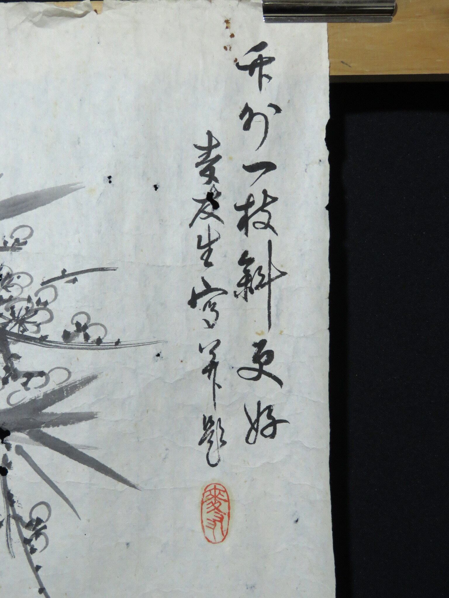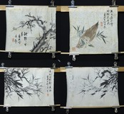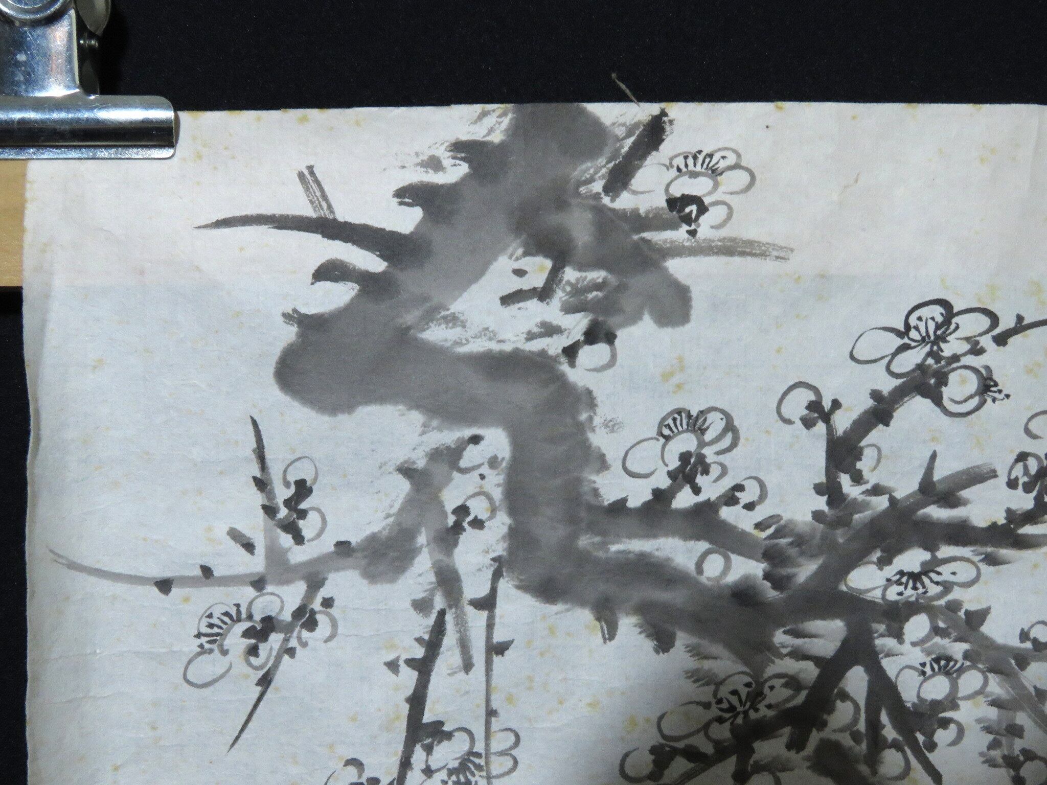 田能村直外(麦友) メクリ4枚 「筍図」「墨梅」「歳寒二友」表装・洗い練習用に JY958