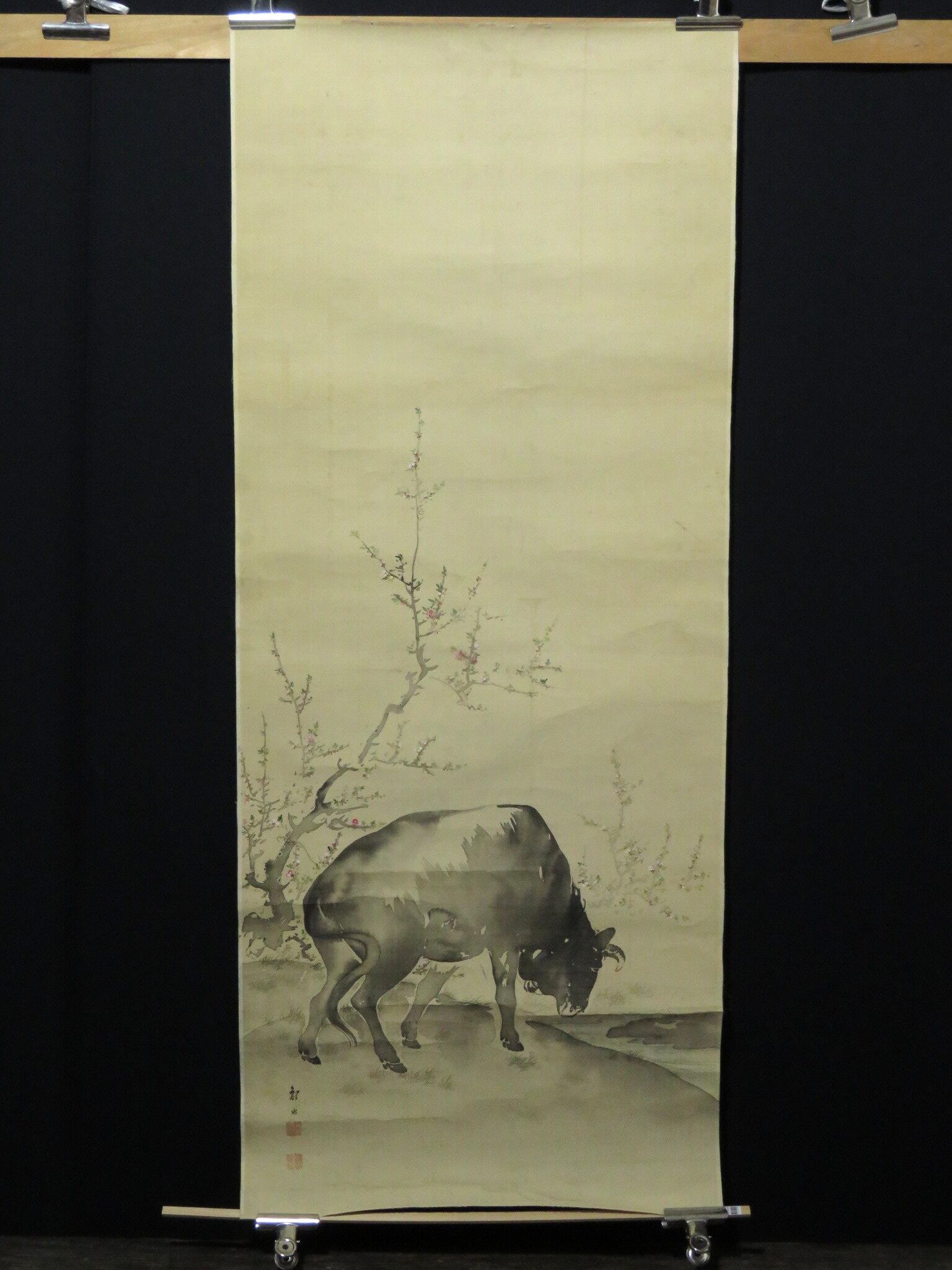 メクリ 鯉水 長閑(桃花牛) 裏打ち付 尺八立 JY528