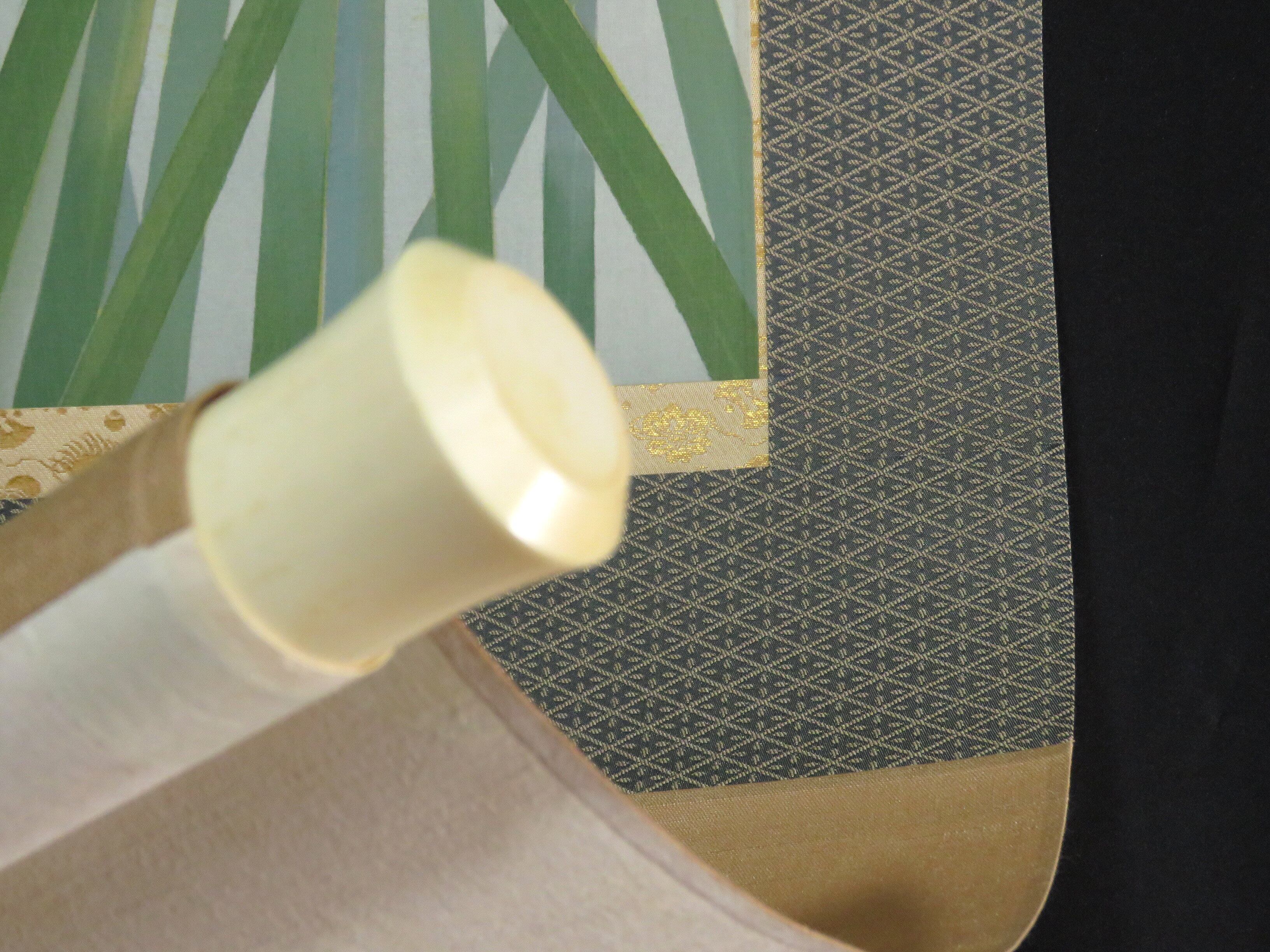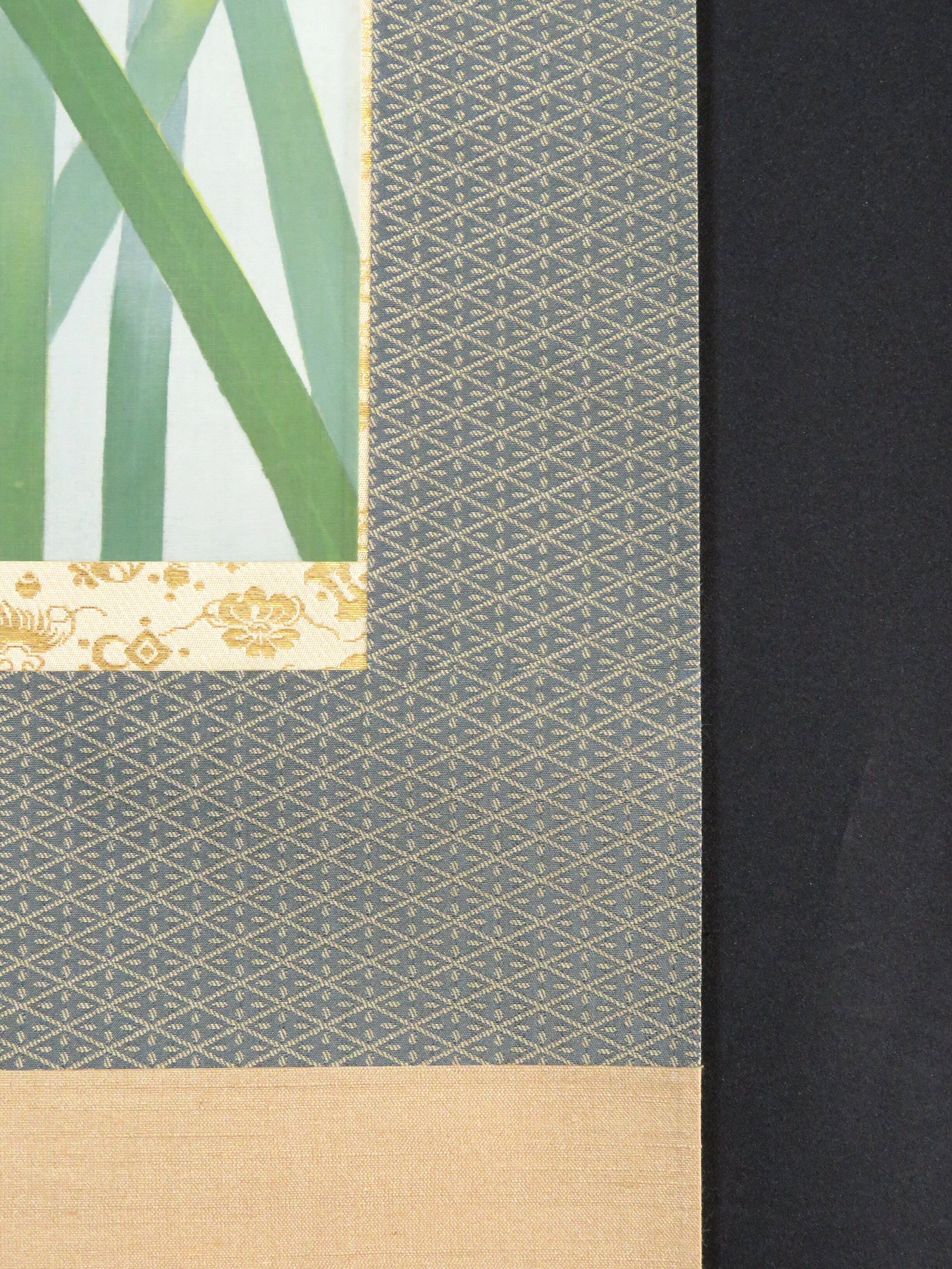 掛軸 白髪悠 花菖蒲 尺八横 hanging scroll JY1843