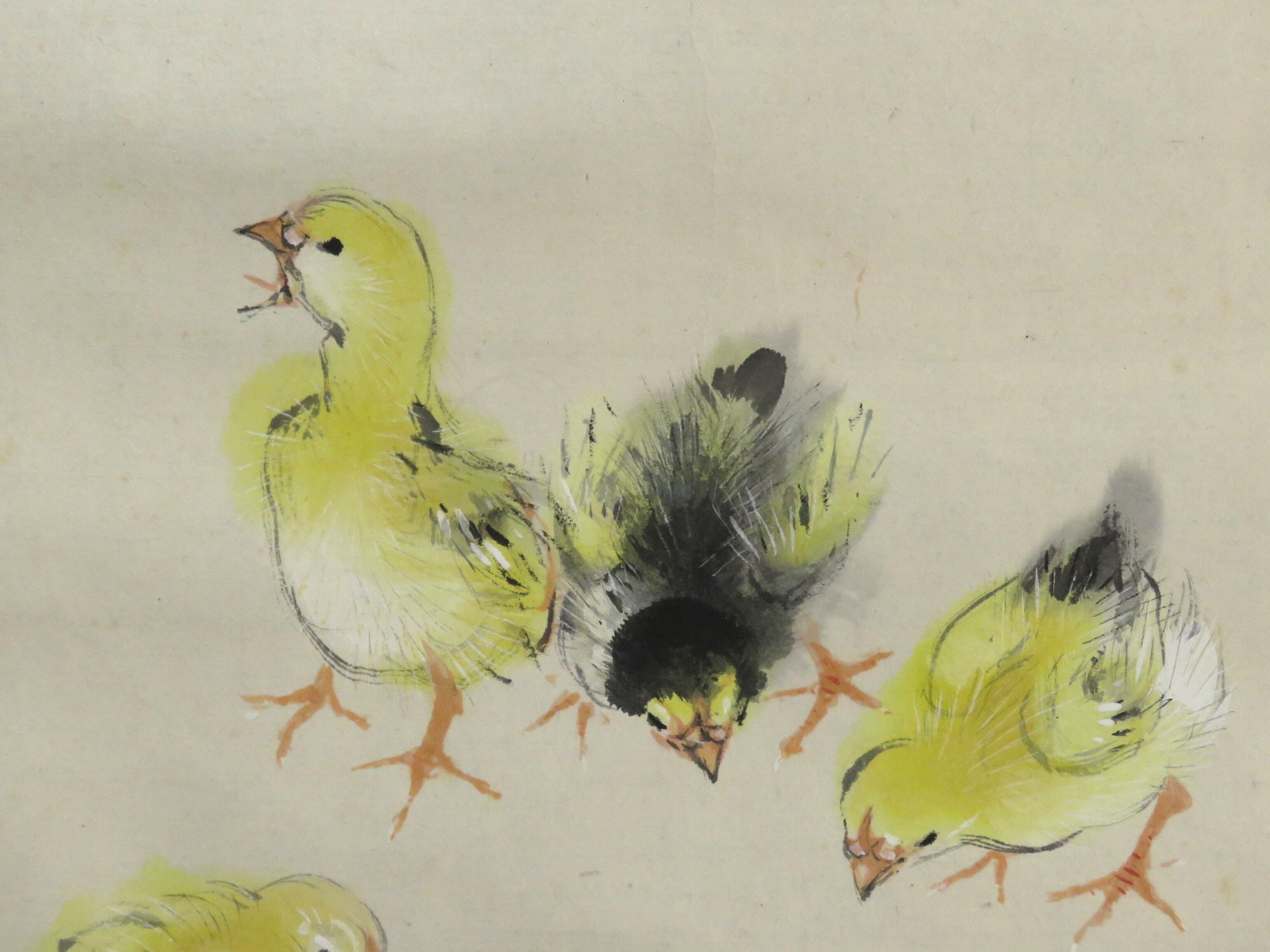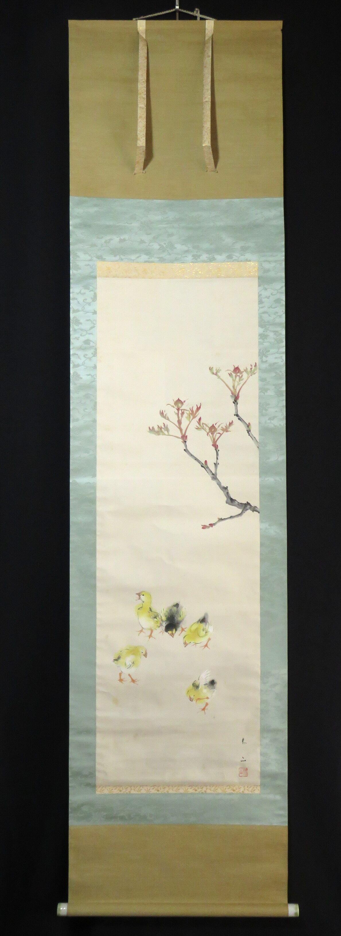 掛軸 立脇泰山 ひよこ 半切立 物故作家掛軸 JY1853