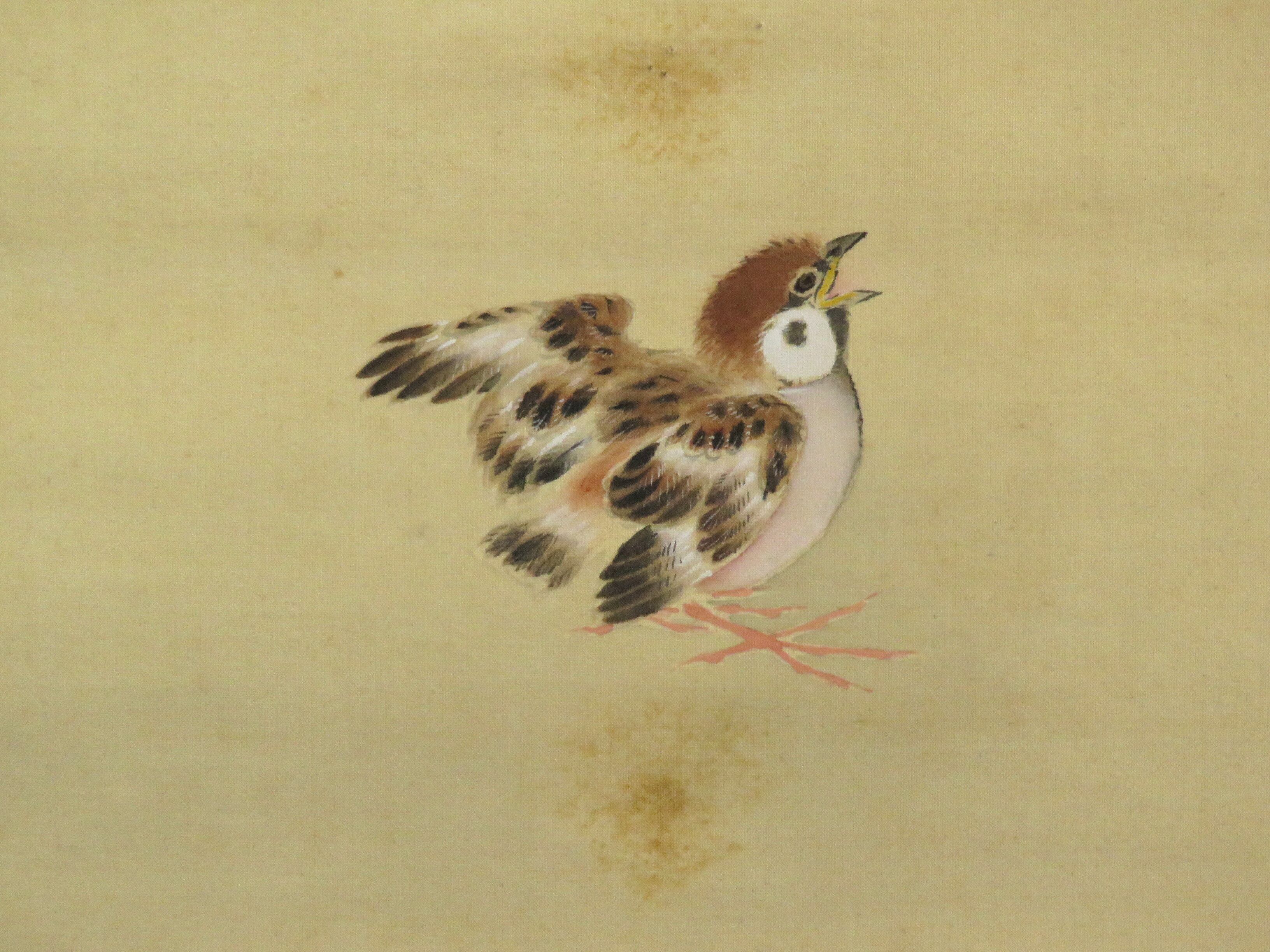 掛軸 熊田耕風 青梅親子雀図 尺五立 hanging scroll JY1890