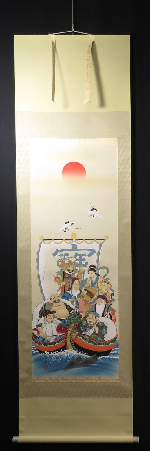 掛軸 三島玉園 七福神宝船 尺五立 現代作家新作掛軸 JY1396