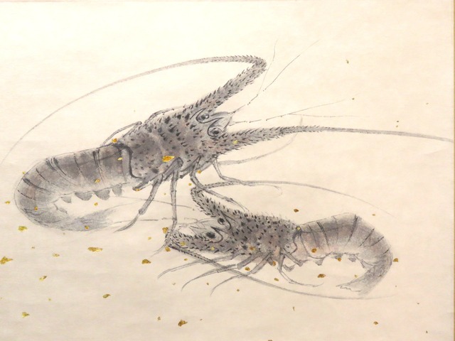 掛軸 田中松泉 海老 尺八横 現代作家新作掛軸 JY1482